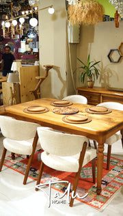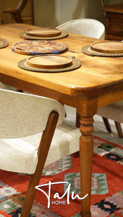 Yemek odası takımımı Talu Home’dan aldım, kalitesi fiyatının çok üstünde. Ahşap yüzey dokusu mükemmel. Artık misafirlerim nereden aldığımı soruyor 😊